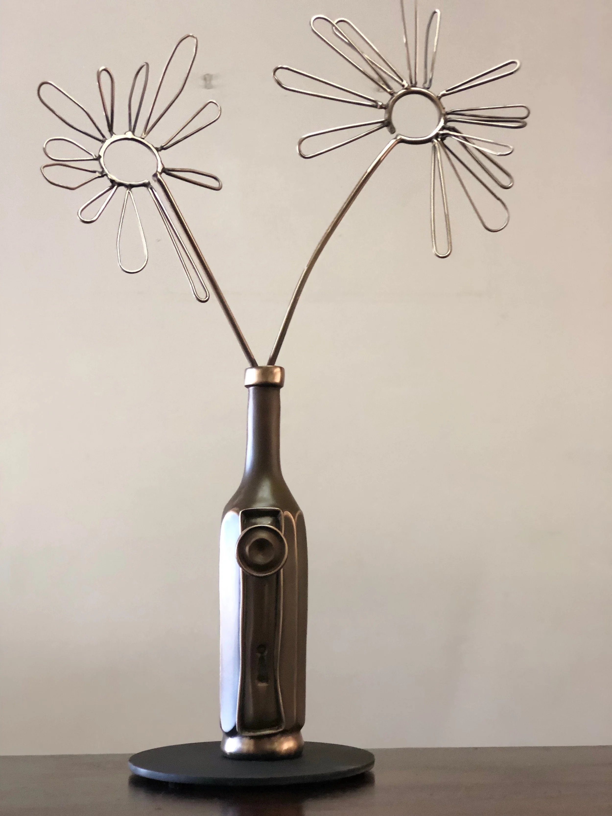 Flowers and doorknob bottles. I have obsessed on this idea of combining doorknobs on to bottles. After much time I feel that they look they way I have always wanted them to.